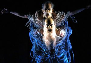 Tathagata Chaudhuri imparts the requisite good-naturedness to Gaur (top left) effortlessly, whereas Mayyukh Dutta’s imposing voice and height-plus-heels make Raghab a fearsome antagonist. Decked in Rushati Chowdhury’s innovatively-designed skeletal costumes and Surojit Paul’s deathly makeup, Susnato Bhattacherjee and Partha Sarathi Chandra create an unforgettable ancestor–ascetic duo (see photo above). Pinaki Mukherjee, Raju Mondal and Amitava Ghosh lend unexpected comic relief as the brothers-in-law in garish floral shirts. Abhyuday Dey’s live music lifts the performance (clocking over two hours, therefore marginally long for young viewers) at appropriate moments.